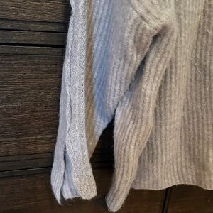 Elegant ribbed turtleneck sweater. Features intricate shoulder detailing. Soft and stylish for any wardrobe.