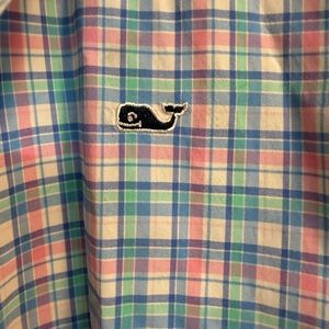 Vineyard Vines Pastel Plaid Whale Shirt performance size medium