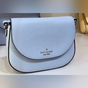 Chic and stylish crossbody bag by Kate Spade. Features a sleek design in a soft blue hue. Ideal for everyday use.