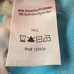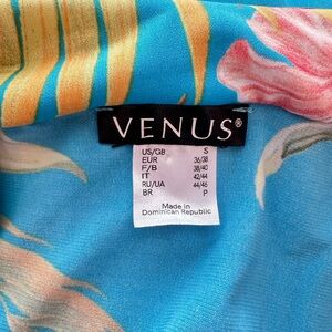 This vibrant tropical-print top from Venus features a multi-color palette of bright blue, pink, yellow, and white.