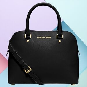 MICHAEL Michael Kors Cindy Medium Saffiano Leather Dome Satchel Black