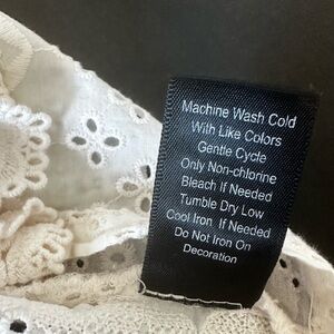 Beautiful cream eyelet lace crop by Altar’d State featuring intricate floral embroidery and layered ruffle straps with crochet lace trim.