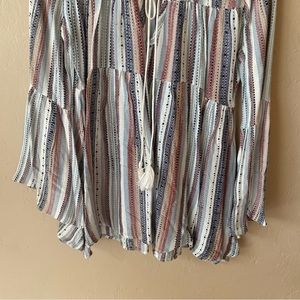 Altar’d State Striped Embellished Bell Sleeve Blouse Top Tassel Tie Neck Large