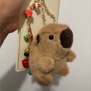 Piper K Natasha Brown Teddy Bear Keychain with White Outfit Bag Charm