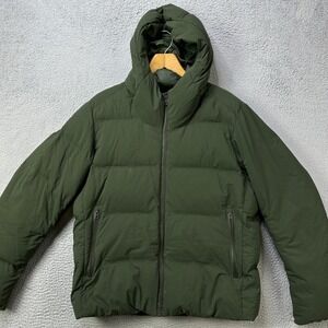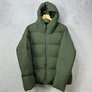 Uniqlo Men XL Jacket Seamless Down Parka Green Full Zip Hoodie Puffer Pocket EUC