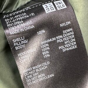 Keywords: Uniqlo jacket, green puffer, hooded coat, down insulation, mens outerwear, winter coat, casual jacket, travel wear, outdoor gear, zip up jacket, warm jacket, lightweight puffer, modern style, everyday essential