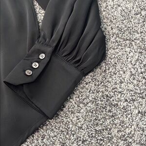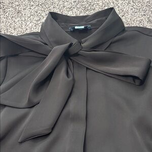 Worn only 1x CeCe tie at neck button down blouse Black Size small 100% polyester Smoke Free home