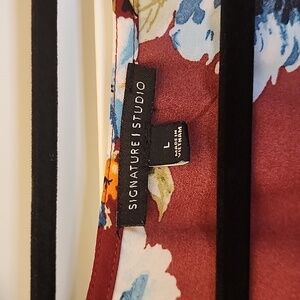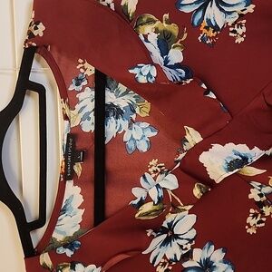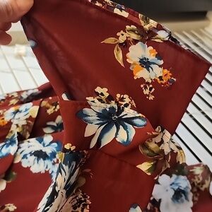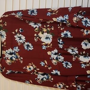 Signature STUDIO Floral Maroom Sheer Bell Sleeve Ruffled Top Large