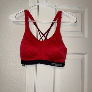 Victoria's Secret Red Mesh Sports Bra with Black Trim