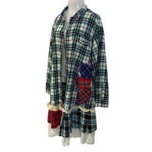 Flannel Shirt Womens 3X Duster Shacket Green Cottage Grunge Art Upcycle Peasant