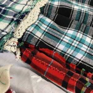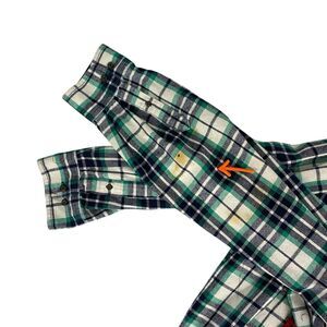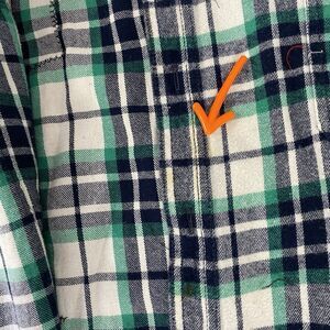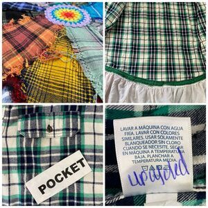 * This re-worked plaid shirt is in its intended condition. It has been modified from its original design and now offers unique fun style by leaning into imperfection.