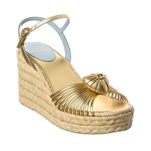 About the brand: Signature elegance with a modern aesthetic. Please note: Size selections are European. For US conversions, please reference size chart. Based on feedback from Members, this brand typically runs small. We suggest sizing up a half size for most styles. Made in Italy Royal Heart 100 Leather Wedge Sandal in gold leather and gold-tone hardware with VLogo accent and braided wedge Adjustable ankle strap with buckle closure Lightly padded leather insole Man-made sole 3.5in heel 1in platform Please note: All measurements are approximate and were taken from a size 37; slight variations may occur. Our products are 100% genuine. In some cases we purchase merchandise from trusted independent suppliers and not directly from the brand owner. In all cases we stand by the authenticity of every product sold on our site.