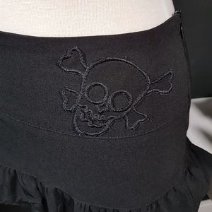 Black Mini Skirt with Skull patch on front. Side Zipper closure.