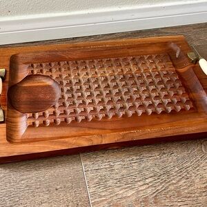 Set of two vintage decorative trays. Features intricate red and gold designs. Perfect for home decor.