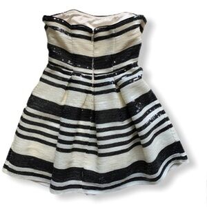Bebe Black/White Striped Sequin Fit & Flare Strapless Party Cocktail Dress Sz 4