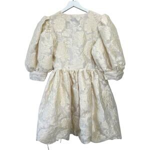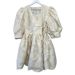 Romantic and statement-making, this Sister Jane Dream Cowboy Kisses Wrap Dress in soft ivory jacquard is the perfect blend of vintage-inspired charm and modern elegance. Designed with voluminous puff sleeves, a flattering V-neckline, and a tie-wrap waist, this dress creates a feminine silhouette that’s ideal for special occasions, parties, or bridal events.