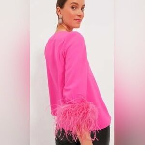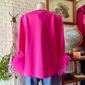 Size X-Large. Brand new with tag. Still selling full price $198. This fan-favorite silhouette is back and better than ever - with an update from a vibrant colorway and fun feathered cuffs! The Hot Pink Easton Blouse is the fabulous silhouette your closet needs. Detailed with an elegant V-neckline and slightly puffed sleeves with statement-making plumes, this swingy top looks perfect when paired with mini skirts, slim-fitting trousers, wide-leg denim, and just about everything else!