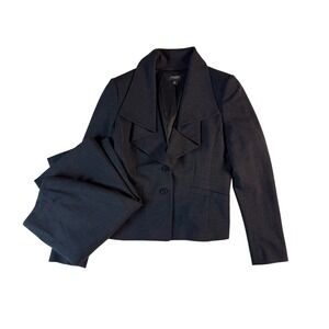 Ann Taylor Charcoal Grey Skirt Suit Set Wide Lapel Blazer Pencil Skirt Size 8