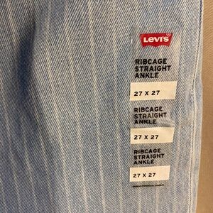 Levi's Ribcage Straight Ankle Jeans, blue with vertical stripes, size 27