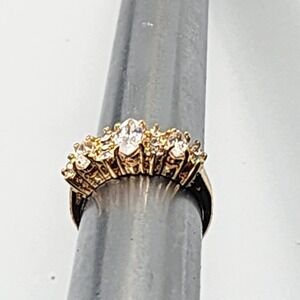 Vintage 1970s Vargas Mfg. Co. Stamped 18KT G.E. Rhinestone Cocktail Ring Sz 6.75.