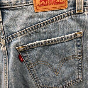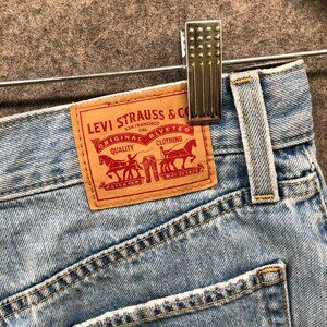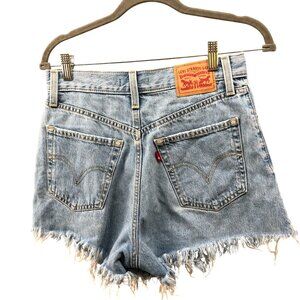 Levi's High Waisted Mom Shorts Womens 27 Light Wash Blue Distressed Cutoff