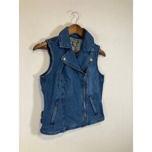 Kate & Mallory Denim Moto Vest Women Small Blue Asymmetrical Zip Side Buckles