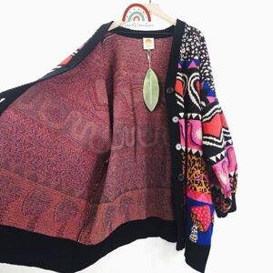 New! FARM Rio Graphic Elements Ainika Cardigan Mushroom Leopard Wool Sweater