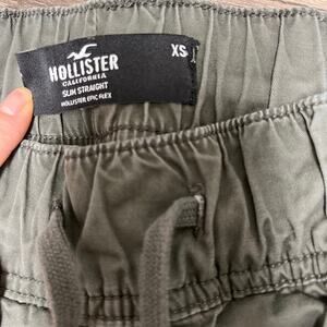 Y2K-era Hollister cargo jogger pants in olive green with a slim straight utility fit. Features an elastic drawstring waist, stacked multi-cargo pockets, and Epic Flex stretch cotton for comfort. Classic early-2000s silhouette with grunge and gorpcore crossover appeal.