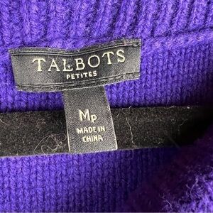 TALBOTS Medium Petite Purple crew neck cable sweater. 70% Merino Wool 25% Nylon 5% Cashmere