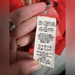 Free People Red Field Of Butterflies Long Sleeve Collared Tunic. Orangey red color with multicolor butterfly print. Long sleeve, collared, plunge v neck. Tunic style, but if you’re short enough, it can be worn as a dress. High low hemline. Size Small.
