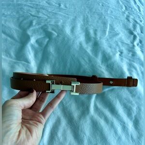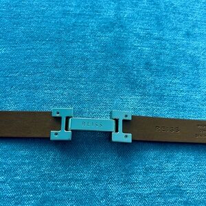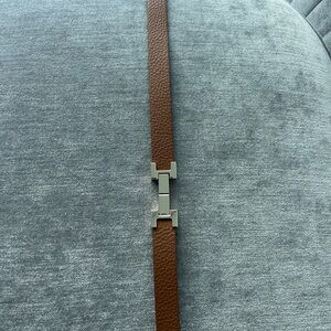 This Reiss belt is gorgeous and has a tan brown pebble leather strap with gold hardware. It’s classy and instantly dresses up an outfit. The belt is 100% leather and made in Italy. It’s NWOT and has no visible flaws or scratches on the hardware. I own this in black as well - check my closet!