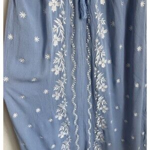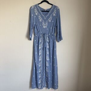 Ivy City Co Blue Floral Embroidered Crepe Maxi Dress Medium Flowy Cottagecore