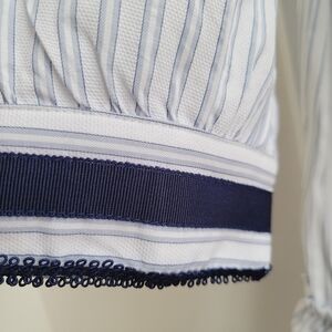 Tuckernuck ruffle neck tiered mini dress in classic blue & white stripes with a blue ribbon tie. Features flowy long sleeves and a chic short length perfect for vacation, brunch, or everyday resort style. A timeless piece for the coastal grandmother and quiet luxury aesthetic.