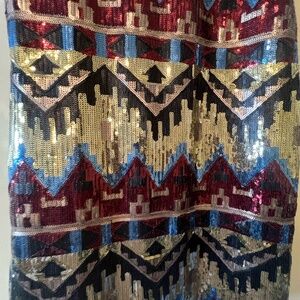 Everly Sequin Women's Aztec V-Neck Mini Shift Dress. NOWT - Medium