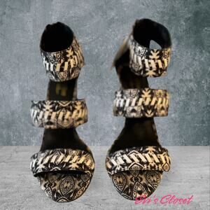 Nicole Miller Artelier Miami Printed Block Heel Sandal Retro Bold Fabric Sz 10M
