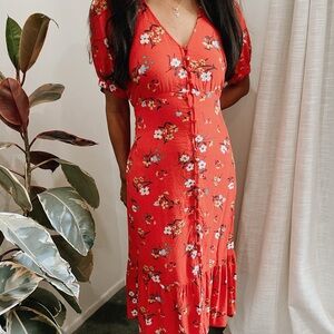 Anthropologie Red Floral Midi Dress