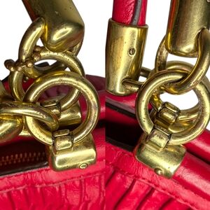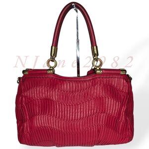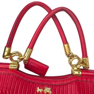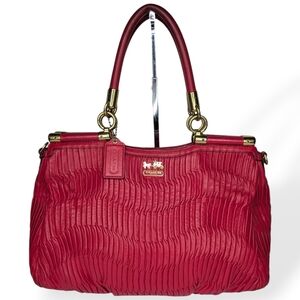 Coach Madison Large Pleated Gathered Red Pink Leather Shoulder Bag Gold Hardware Satchel Style 21281