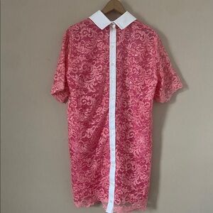 Anthropologie Stella Nova Sequined Lace Shirt Dress in Amazing Pink Medium