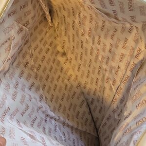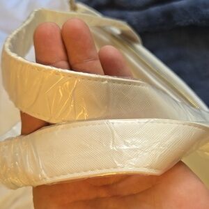 Chic tote with a white body and gold accents. Perfect for everyday use. Stylish and practical.