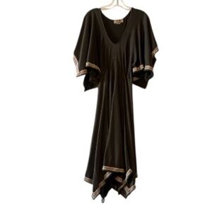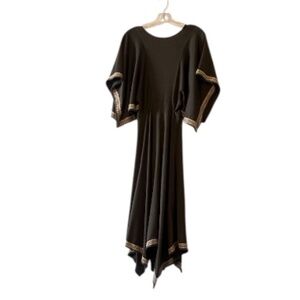 Vintage 1970s Inspired Olive Green jersey handkerchief hem dress or lounging gown.