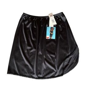 Vassarette Tailored Classics Half Slip Black Med 18" Lace Trim Side Slit 11122