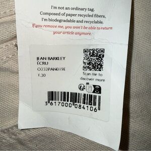 OCTOBRE NWT Men's Barkley Jeans in Ecru Size 30 Wide and Tapered Fit $145