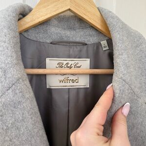 Chic and cozy light gray trench coat. Features a classic design with button closure. Ideal for layering.