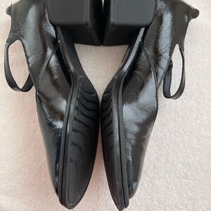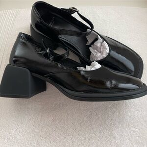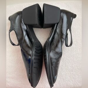 Ansie is the contemporary Mary Jane pumps with a bold look. The style is crafted in Black patent leather featuring a rounded toe shape and a decorative ankle strap with buckle fastening.