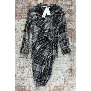 Veronica Beard Sierra Plaid Flannel Ruched Shirt Dress Womens Size 4 NWT