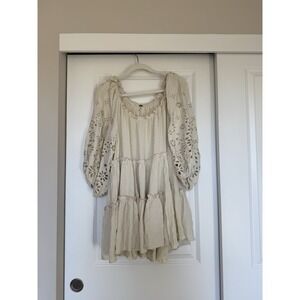 free people celeste cutout flowy mini tunic dress Ivory Size Medium Bohemian