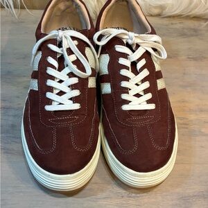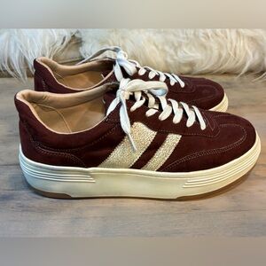 Elevate your style with these burgundy sneakers featuring cream accents. Perfect for any casual outing.
