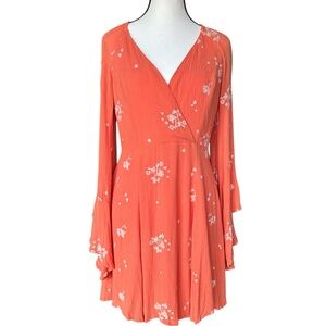 Free People Jasmine Floral Embroidered Bell Sleeve Mini Dress - Orange - 8