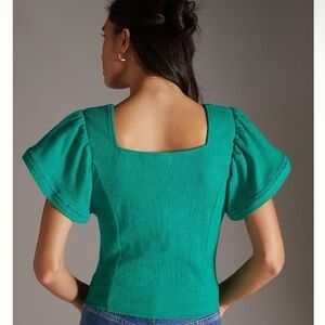 Anthropologie Dolan Left Coast Green Button Front Flutter Sleeve Top