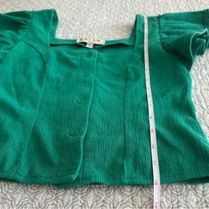 Anthropologie Dolan Left Coast Green Button Front Flutter Sleeve Top Size XS